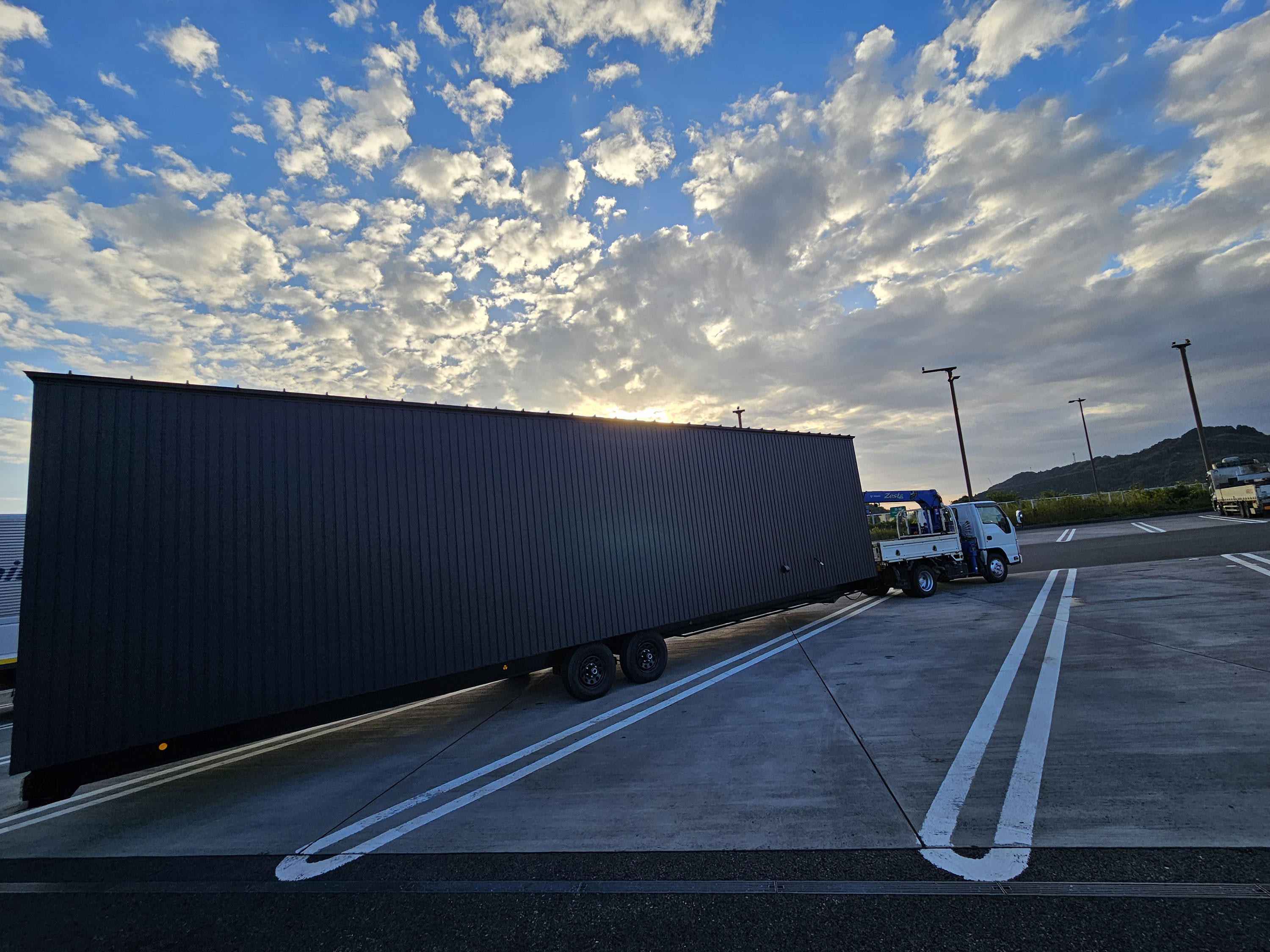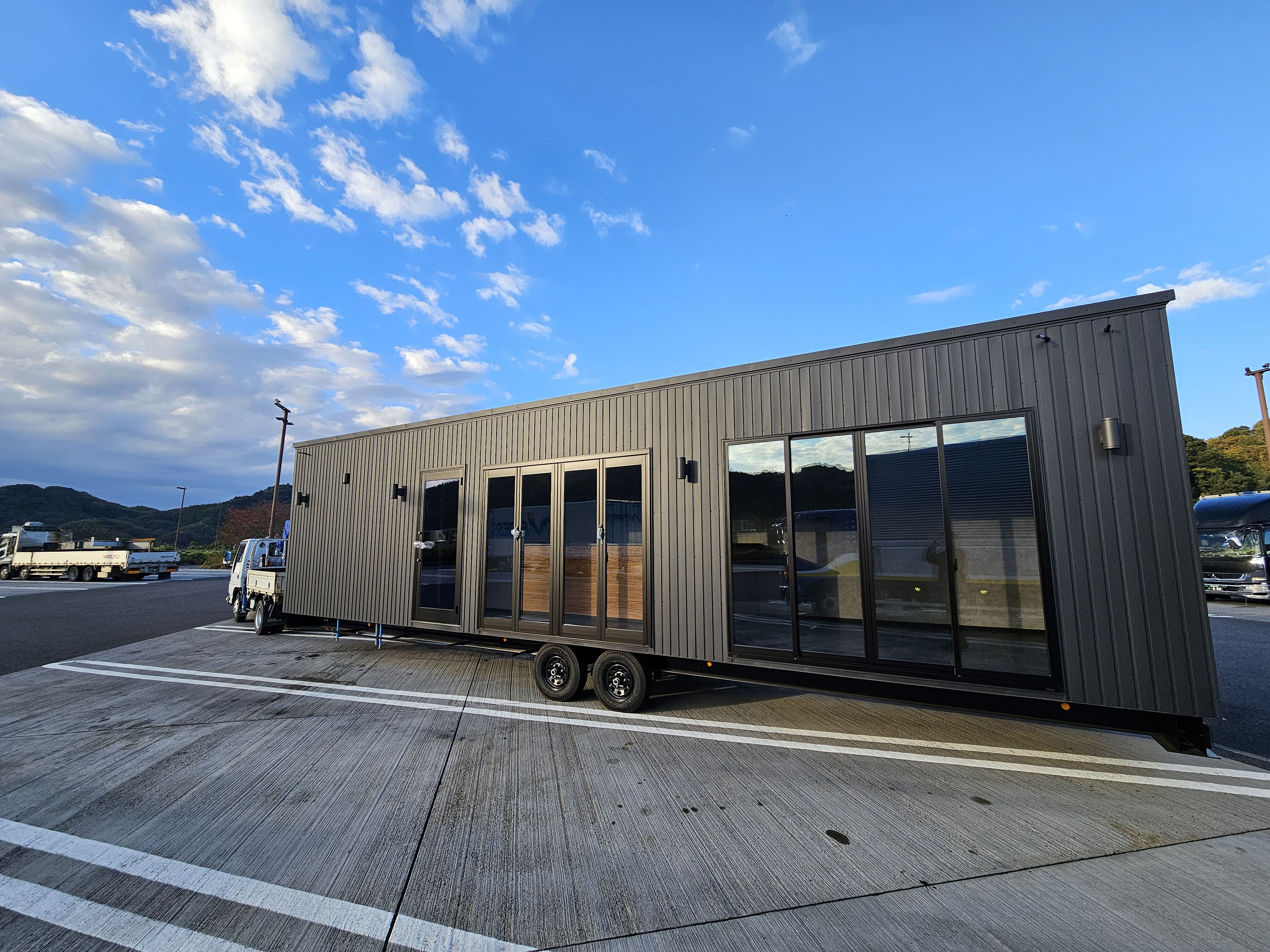製造工場のある浜松市からお隣の神奈川県に11mの長さのトレーラーハウスを納車させていただきました。